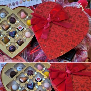 Large Chocolate Heart filled with Bonbons. The “box” itself is made of 65% Chocolate! $65