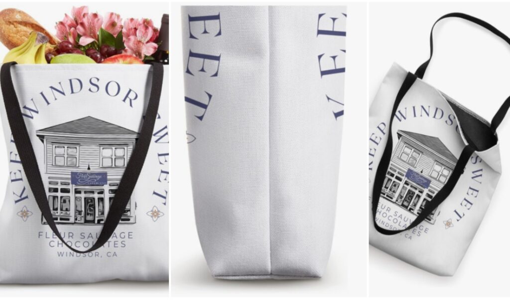 Keep Windsor Sweet Tote bag! Let everyone know where your favorite little pastry and chocolate shop is. Graphic is on both sides of the 16 inch tote bag.