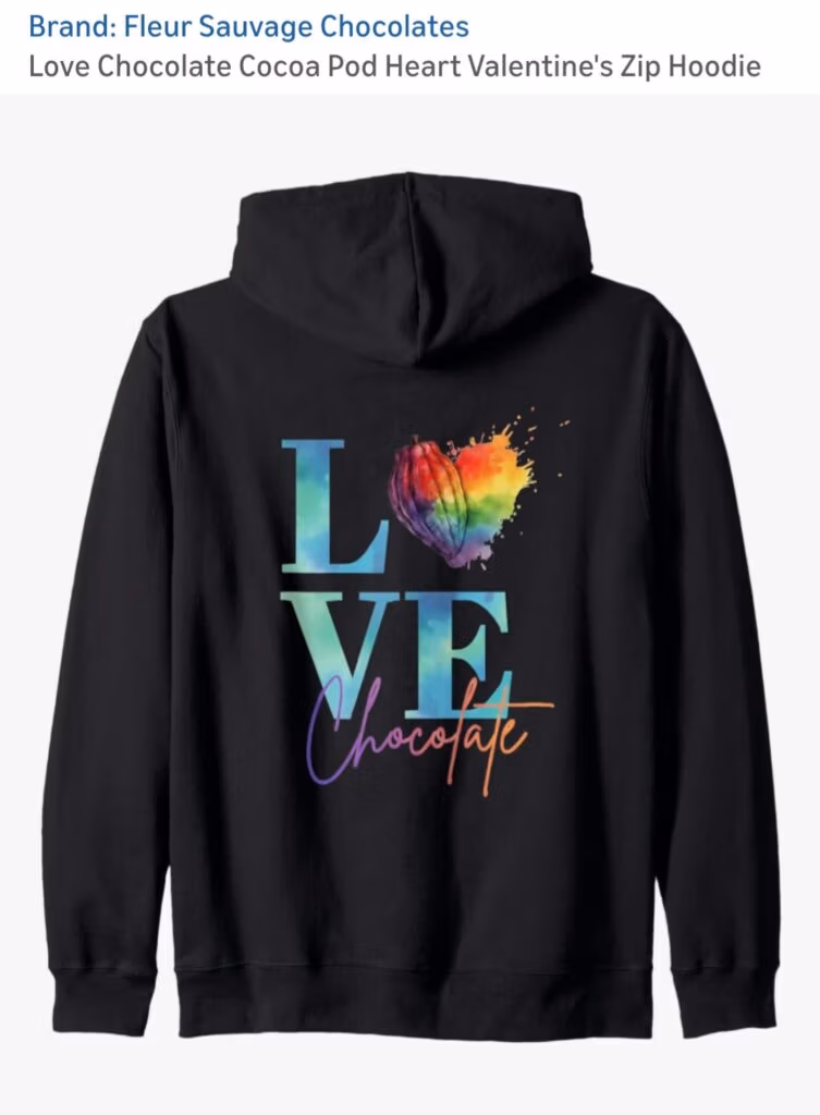 Love Chocolate Cocoa Pod Heart Valentine’s Zip Hoodie https://a.co/d/0ecOkjSY